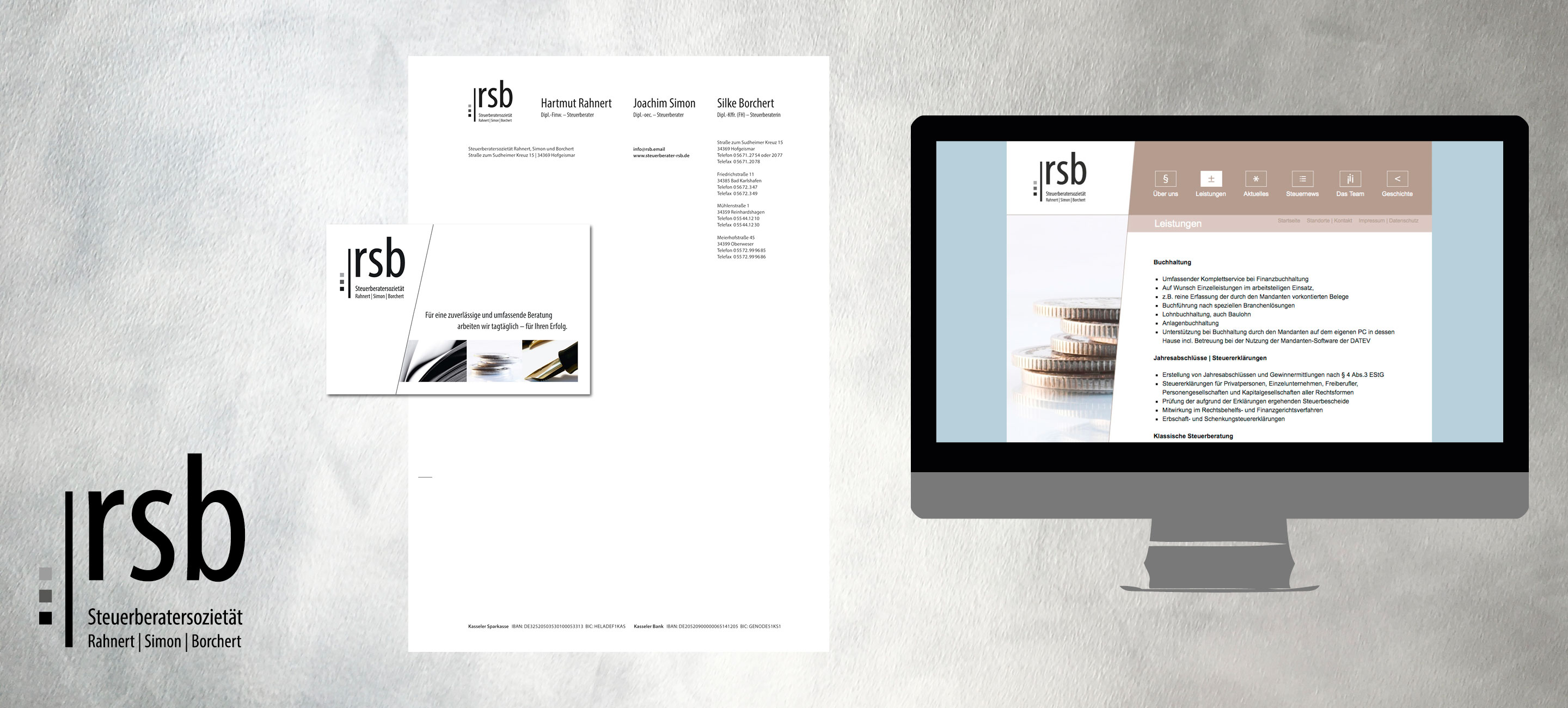 Sachlich, kühle Eleganz gepaart mit zurückhaltenden Farbtönen und einer klaren, hellen Bildsprache sind die Bestandteile des Erscheinungsbildes. Steueroptimierung – Controlling – Jahresabschlüsse ... sind Bereiche aus dem täglichen Arbeitsfeld der Sozietät. Ein zusätzliches Stilelement ist die von links unten nach rechts oben laufende Linie. Diese trennt Logo/Bild/Text voneinander und symbolisiert zeitgleich etwas Ansteigendes, bzw. lässt das Design dynamischer wirken.
