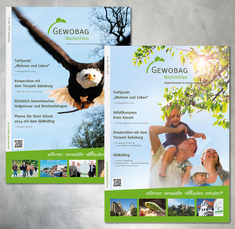 Die Gewobag Nachrichten, das Magazin für Mieter und Mitglieder der Gewobag erscheint zweimal pro Jahr. Präsentiert werden aktuelle Projekte rund ums Wohnen sowie regionale Themen, Neues aus dem Tierpark Sababurg und alle Aktivitäten des Treffpunktes Wohnen und Leben.